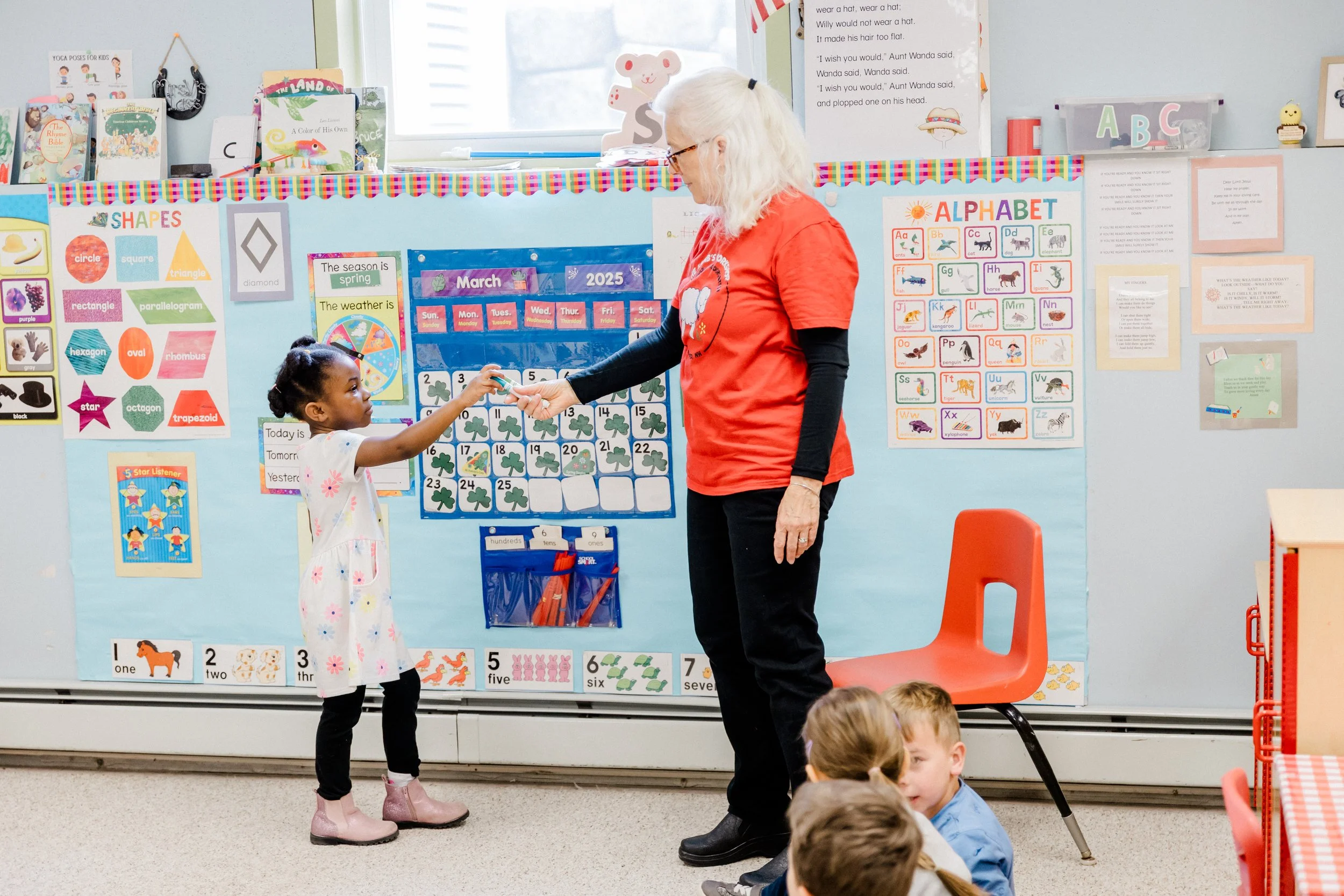 Our 4 year old’s work on letter formation, phonemic sound, and beginning word formation to establish the foundations they need to succeed in Kindergarten. The approach we use is hands on and students look forward to learning the new letter of the week.